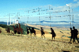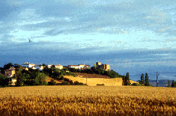 dall'alto, Pamplona ed i Pirenei oramai lontani. Giungiamo affaticati a Puente la