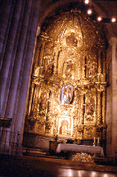 lo sfarzo barocco dei tre "retablos", gli altari lignei,